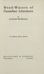 Head-waters of Canadian Literature